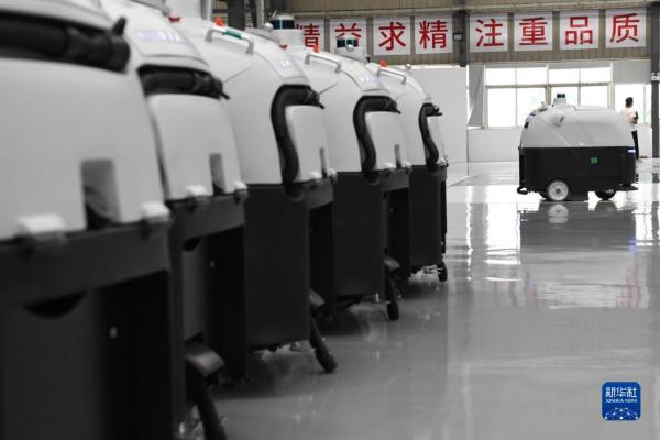 4月27日拍摄的合肥智行者科技有限公司生产的无人驾驶洗地车。新华社记者 张端 摄