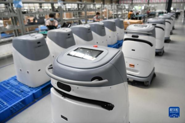 4月27日,合肥智行者科技有限公司生产的无人驾驶洗地车在车间测试中。新华社记者 张端 摄