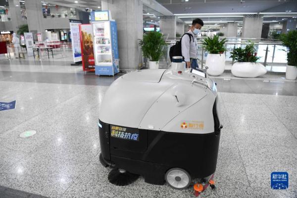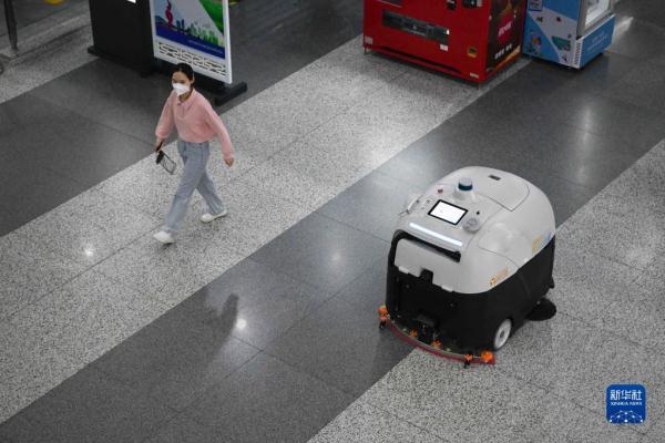 4月27日,合肥智行者科技有限公司生产的无人驾驶洗地车在合肥南站作业。新华社记者 张端 摄