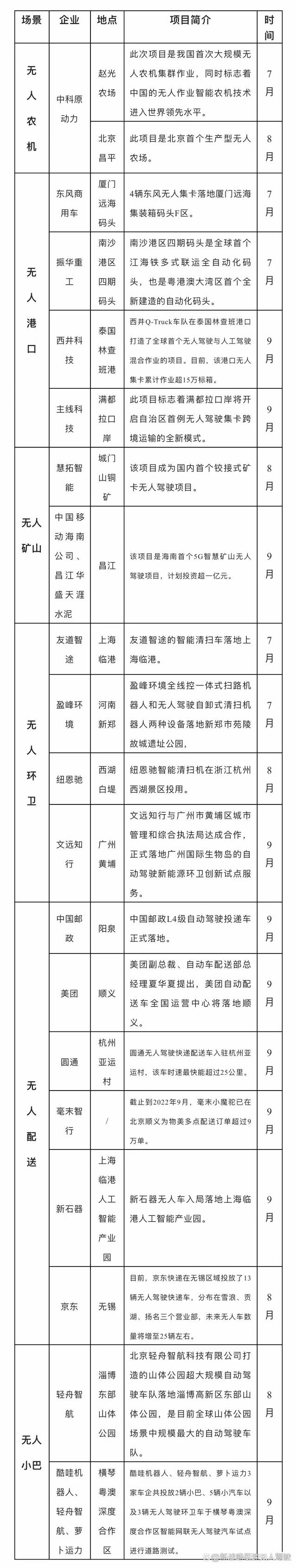 2022年三季度低速无人驾驶落地情况(新战略低速无人驾驶产业研究所不完全统计)