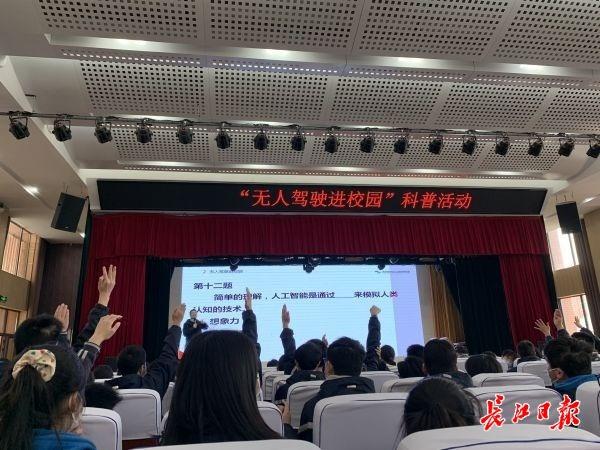 “无人驾驶进校园”科普活动,学生们争相举手抢答。 记者陶常宁 摄