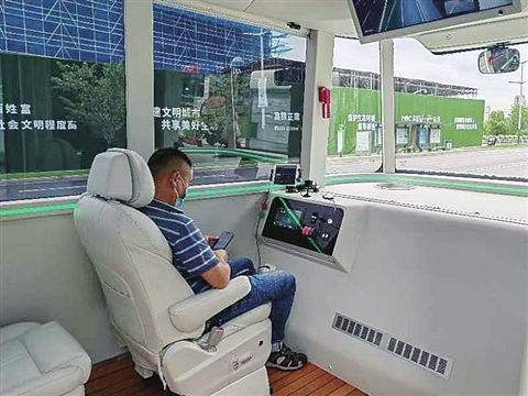 昨天,记者在苏州高铁新城街头看到,银色车身的轻舟智航无人驾驶小巴龙舟SPACE格外醒目。登上小巴,科技感扑面而来,车辆驾驶操控台上仅有一块电子屏幕和数个应急按钮,再无其他硬件设施。
