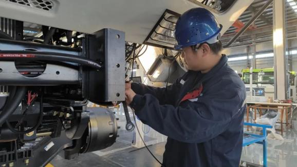 崔文玉告诉记者,公司自投产以来,便围绕纯电动无人驾驶矿用车,不断攻坚克难,持续加大研发力度。在无人驾驶及线控底盘技术方面实现了重大突破,本次下线的95吨纯电动无人驾驶矿用车是公司研发的第二代新能源矿用车,其载货量及动能较一代产品均有大幅度提升。