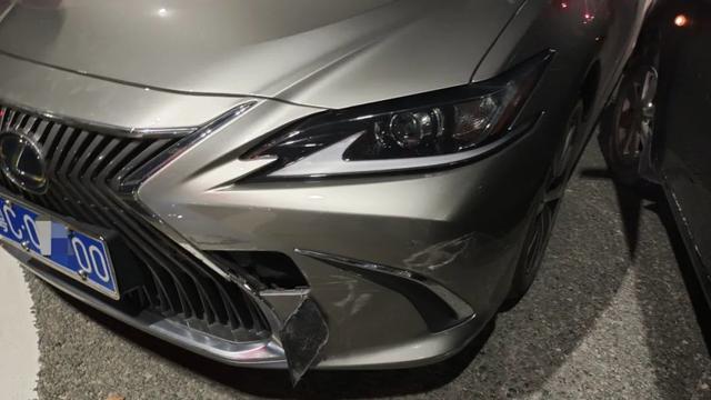 这时一辆粤CV××25号黑色比亚迪小车也从对向车道左转进入路口,司机王先生发现缓慢行驶的凌志小车,但诡异的是,驾驶座上似乎没有人。王先生吓得急踩刹车,没想到凌志小车竟继续行驶,直到撞上比亚迪小车车头才停下。▼