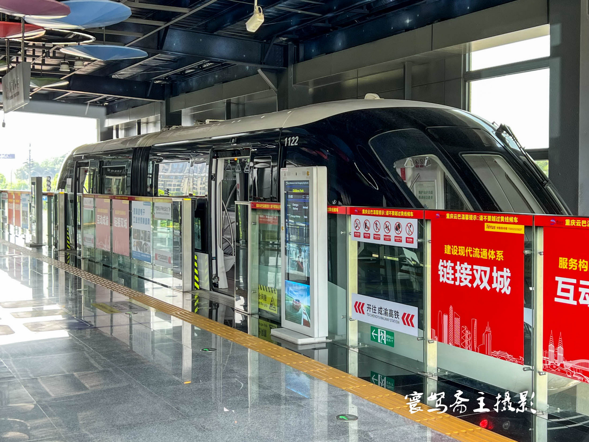 重庆璧山的“云巴”是去年4月16日开通的,全长15.4公里,据说是全球首条无人驾驶的“空中巴士”,坐在车上感觉和主城的轨道列车差不多,不过速度可就慢太多了。