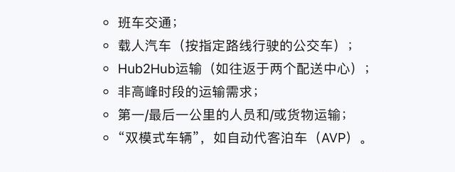 德国作为汽车的诞生地,自动驾驶的试点实施也走在前列。去年五月,德国联邦议院通过了《自动驾驶法》草案。该法律草案于7月生效。根据该法,自2022年开始,德国将允许自动驾驶汽车(L4级)在公共道路上的指定区域内行驶。德国由此成为了全球首个允许无人驾驶车辆参与日常交通并应用在全国范围的国家,但是,要注意一点,并不是我们理解的L4级小客车,而是以下这些车辆: