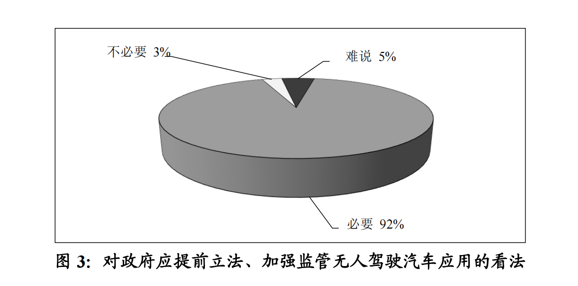 无人驾驶汽车上路是科技发展进步的大势所趋,民调显示,超九成的受访市民支持政府对无人驾驶汽车上路提前立法、加强监管,比例高达92%,而认为没必要的仅有 3%。政府出台的现有法规中,在无人驾驶汽车道路测试管理方面进行了规范和指导;但对于无人驾驶汽车真正上路行驶过程中,发生交通安全事故和侵权责任归属问题或者由此产生的数据隐私保护问题等,国内只有个别地区发布了相关的试行细则,绝大部分地区仍缺少有效的法律法规监管。