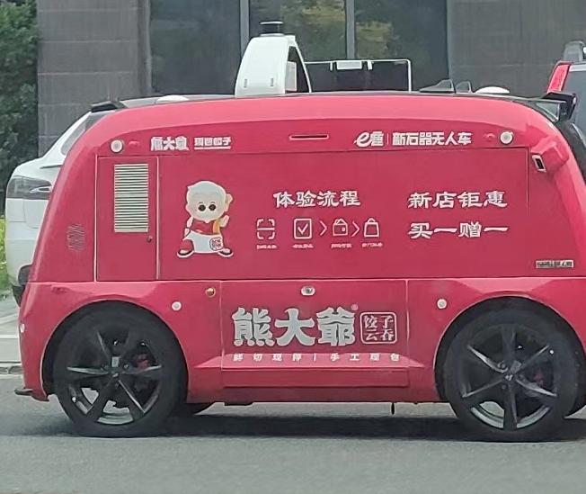 新石器的无人车不仅可以购买饮料,还承担了外卖功能,甚至可以送饺子。
