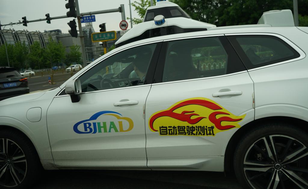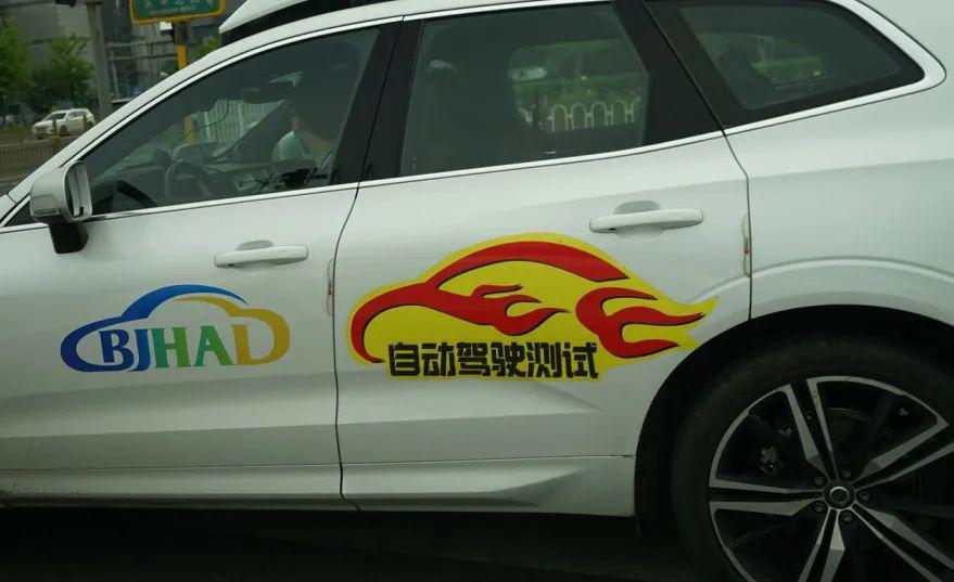 从公开的信息来看,亦庄只有两家企业在进行 Robotaxi 自动驾驶测试,但这样的认知是错误的,我们在街道上看到了不少非百度、小马智行的测试车辆,像以沃尔沃 XC60 为基础改装的测试车辆,车上喷涂着 "BJHAD" 的英文标识,但没有标示任何中文。
