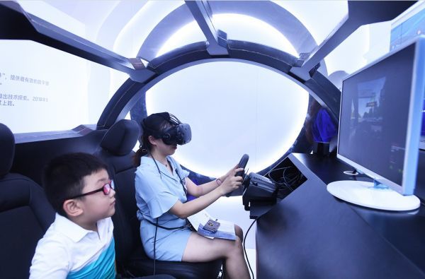 在重庆举行的中国国际智能产业博览会上,观众在体验无人驾驶。(新华社发)