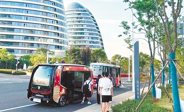 8月24日,在武汉经开区军山新城,东风悦享“春笋号”正在接送乘客。(通讯员 曹亚莉 摄)