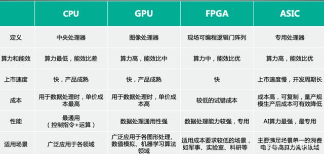 由于高算力的要求,汽车SoC技术门槛很高。而高算力依赖于处理器芯片。包括CPU、GPU、DSP等通用处理器芯片和ASIC专用处理器芯片和半专用芯片FPGA。汽车主控芯片领域, GPU作为通用加速器,在较长一段时间内仍将保持其主流地位;FPGA是硬件加速器,将成为GPU的有效补充;等未来全部或部分智能驾驶算法固化后,ASIC将成为最具性价比的选择。