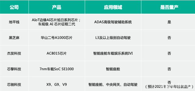创业公司,典型的有日本Socionext、我国的地平线等。2019年2月,地平线推出中国首款车规级AI芯片“征程二代”,可提供超过4TOPS的等效算力,典型功耗仅2瓦。